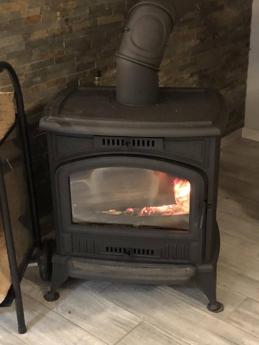 Dom posiada ogrzewanie podłogowe oraz kominek.
