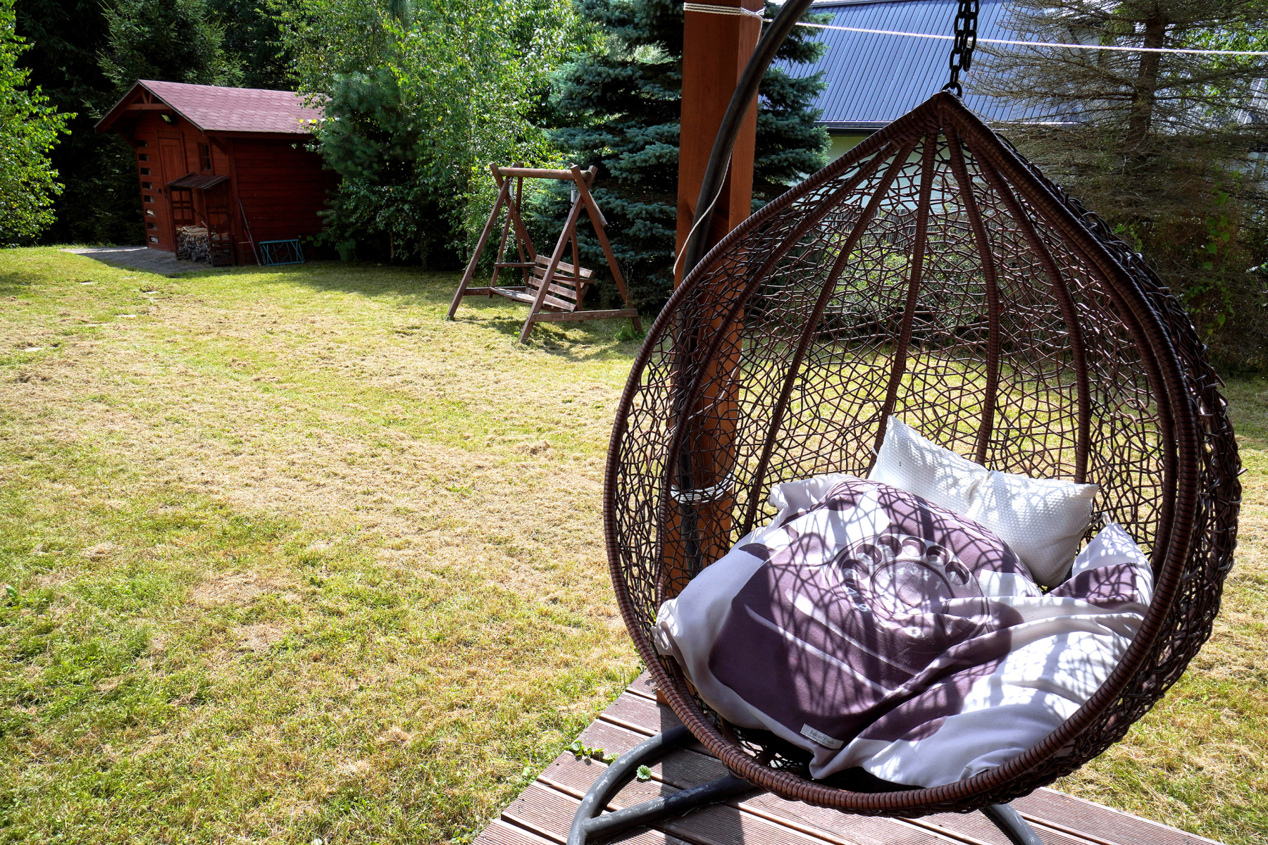 Przy domu znajdują się kolejne udogodnienia w tym sauna ogrodowa w formie beczki, saunę dopełniają idealnie „bania” ogrodowa z opalanym drewnem piecem zewnętrznym.